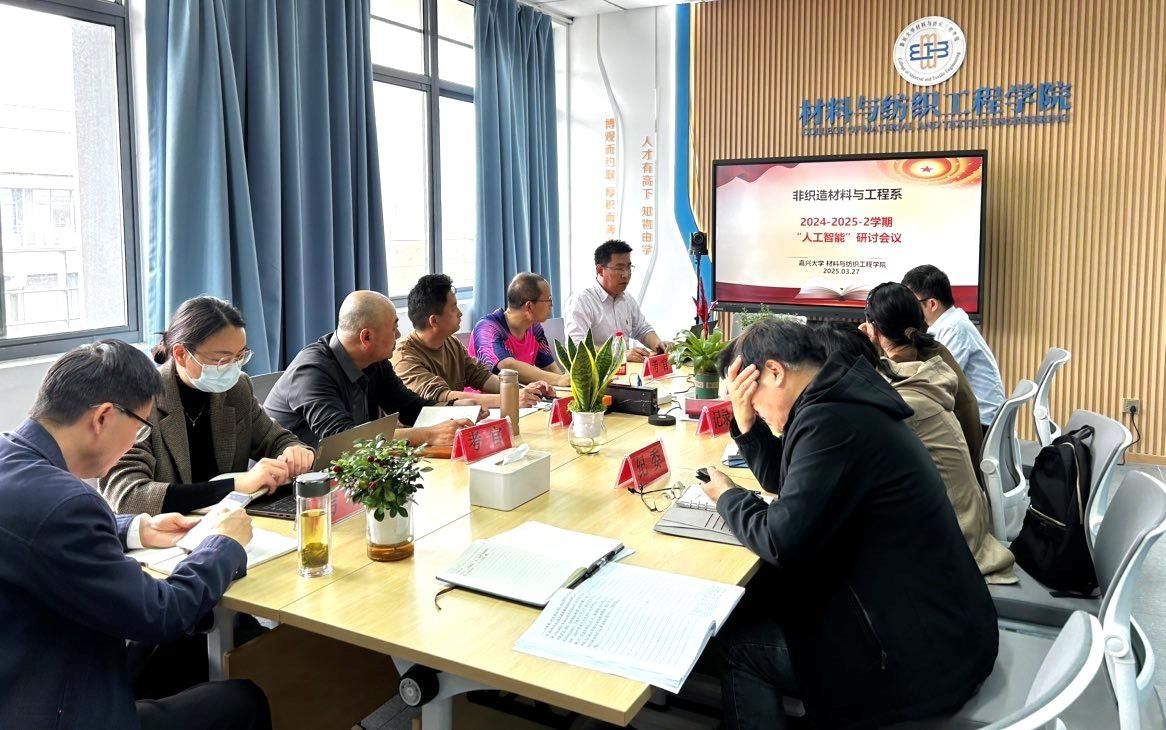 会议还围绕如何将人工智能纳入课程体系展开了讨论,进一步深入探讨人工智能技术在非织造材料与工程领域的应用,以及如何将这一前沿技术融入到教学和科研中。大家一致认为,作为教育工作者,高校教师应当及时调整教学思路,紧跟技术潮流,推动学科的不断发展,培养更多具备创新能力和实践能力的高素质人才。