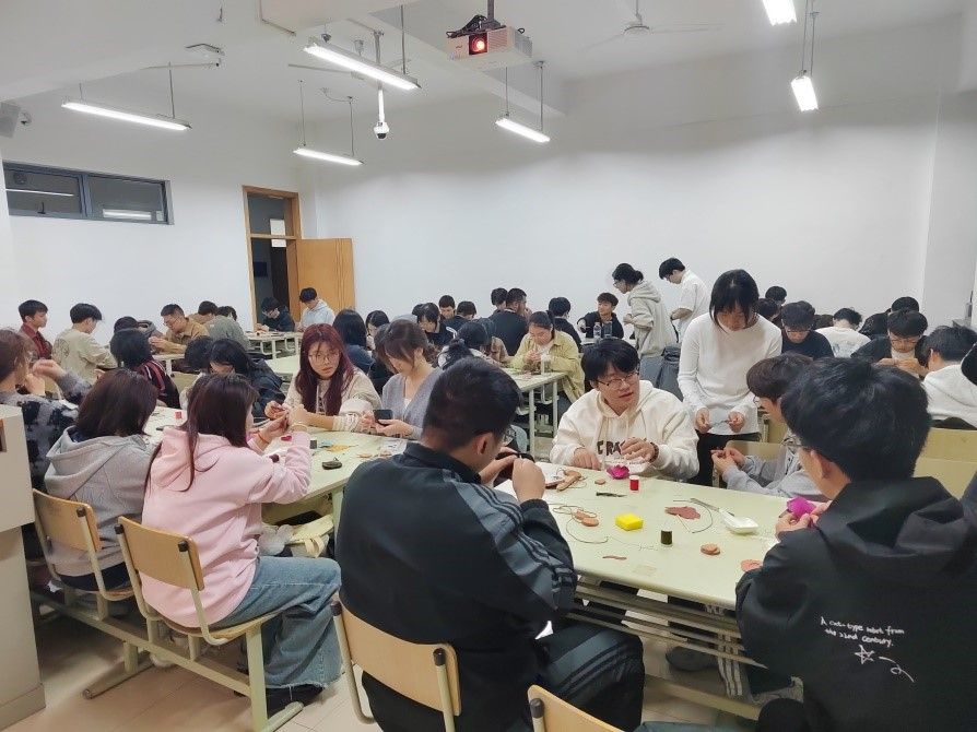 首先,洪新球老师从皮革产品相关知识切入,阐述了皮革工艺在不同文化背景下的发展与演变,引导同学们深刻认识到皮革不仅是一种材料,更是承载着人类文明与智慧的载体。随后,详细讲解了皮革文创的设计的理念且强调创意源于生活并鼓励同学们自己亲手制作一份属于自己的文创作品。随后,李书卿老师详细介绍了不同皮革制品的制作过程,并指导同学们进行粘合、上胶、打磨、抛光等。罗建勋老师也通过实际操作向大家展示了如何将创意转化为具体的皮革制品,其娴熟的技艺赢得了同学们的阵阵赞叹。老师们的亲和力和专业素养让同学们在轻松愉快的氛围中学习到了宝贵的知识和技能。在老师们和志愿者们的悉心指导下,同学们纷纷投入到皮革文创的制作中,现场气氛其乐融融。大家充分发挥自己的想象力和创造力,将一块块普通的皮革材料变成了独具特色的文创作品。