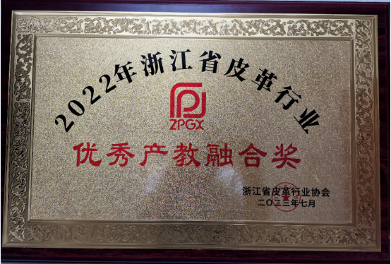 轻化工程系在产教融合、科教融汇方面给予浙江省皮革行业的杰出贡献而被授予“浙江省皮革行业优秀产教融合奖”。