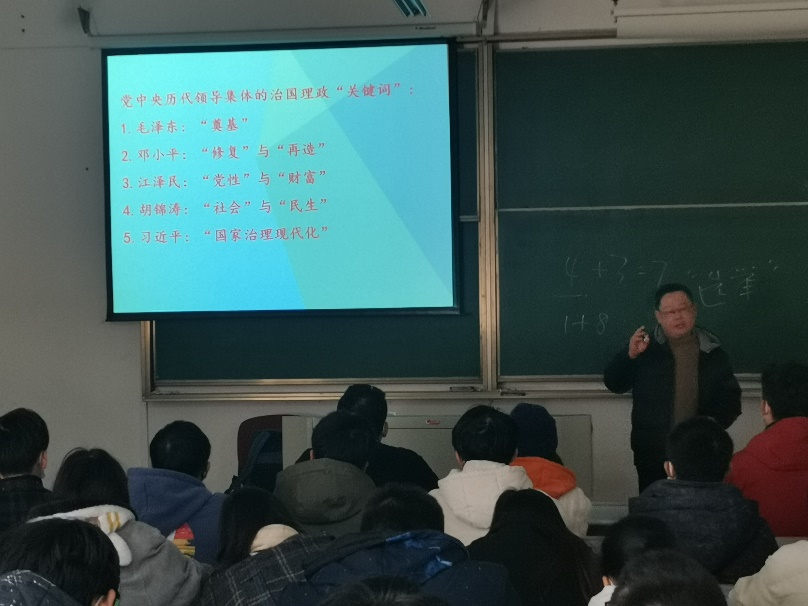 钱牧老师首先从十九届六中全会的全会之魂:“百年大党”的初心和使命出发,细致为同学们讲述了十九届六中全会的精神内涵,并结合党中央历代领导集体的治国理政“关键词”,具体讲述了每一代领导人的治国理念。