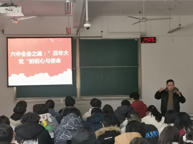 1230日下午14点,学院邀请红船精神研究中心的钱牧老师宣讲十九届六中全会精神,学院80余名学生党员、积极分子参加此次宣讲会。