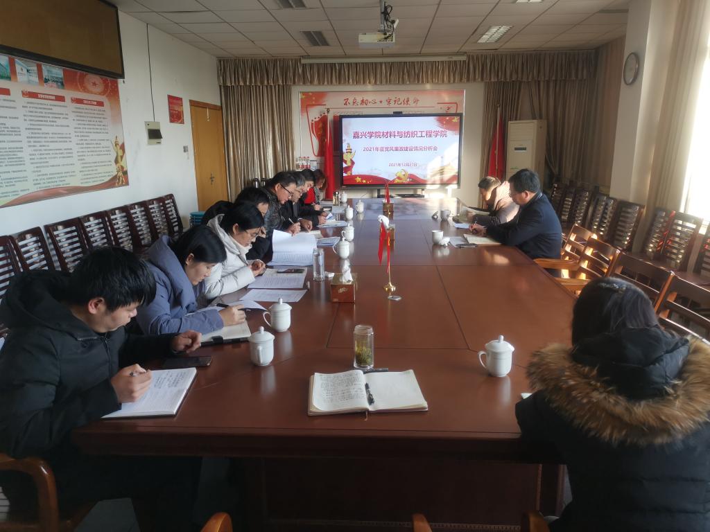 1227日下午,材纺学院党委召开2021年党风廉政建设情况分析会。校党委副书记吴云达、校纪委副书记、校纪检监察室主任黄金珠到会指导工作。学院党政班子成员、各系部负责人、学校特约监察员等参加会议。院党委书记韩宝明主持会议。