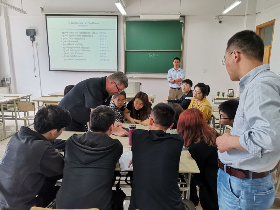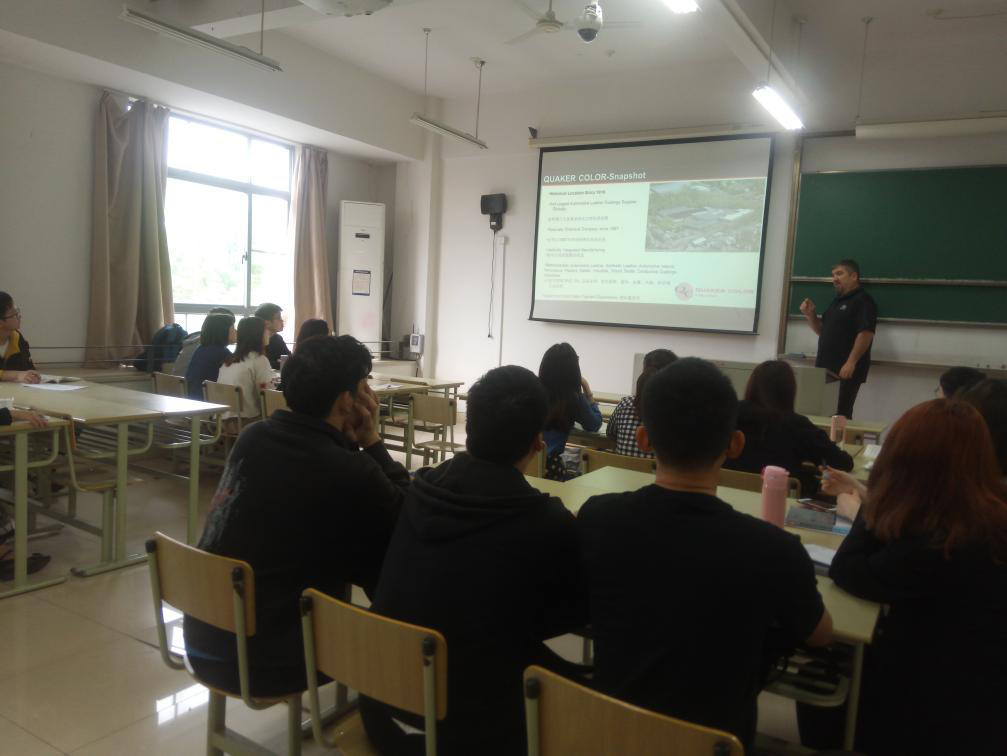 应禁漫天堂 轻化工程系的邀请,美国QUAKER COLOR公司的技术工程师James Withelder先生和杨欣先生于5月14日做客“嘉兴学院皮革讲堂”,为轻化工程专业学生做了“Basic Finishing Knowledge”及“皮革制造4.0”的学术报告,并进行了深入地交流。该报告围绕当前皮革的发展趋势、皮革涂饰的关键技术及皮革智能制造实现的条件等内容进行了精彩的讲解,开阔了本专业师生的视野,加深了对专业知识的理解。