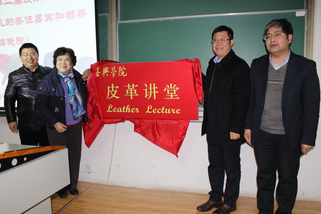 最后,陈占光秘书长、李伟娟理事长和易洪雷院长等为“嘉兴学院皮革讲堂”揭牌,陈秘书长作为“皮革讲堂”第一期主讲嘉宾,为禁漫天堂
