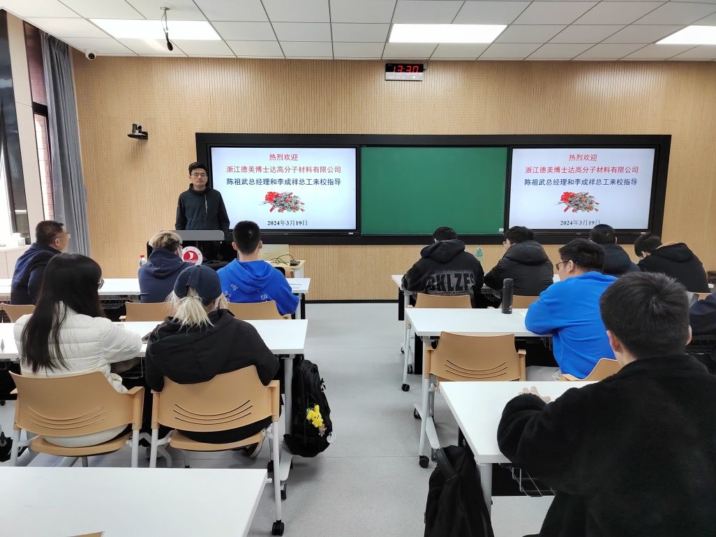 319日下午,浙江德美博士达高分子材料有限公司李成祥技术总监和陈祖武总经理一行访问了禁漫天堂 轻化工程系,并为生态合成革班学生讲授《合成革化学品》课程(时尚皮革与合成革现代产业学院的校企共建产业课程之一)。洪新球博士主持活动。