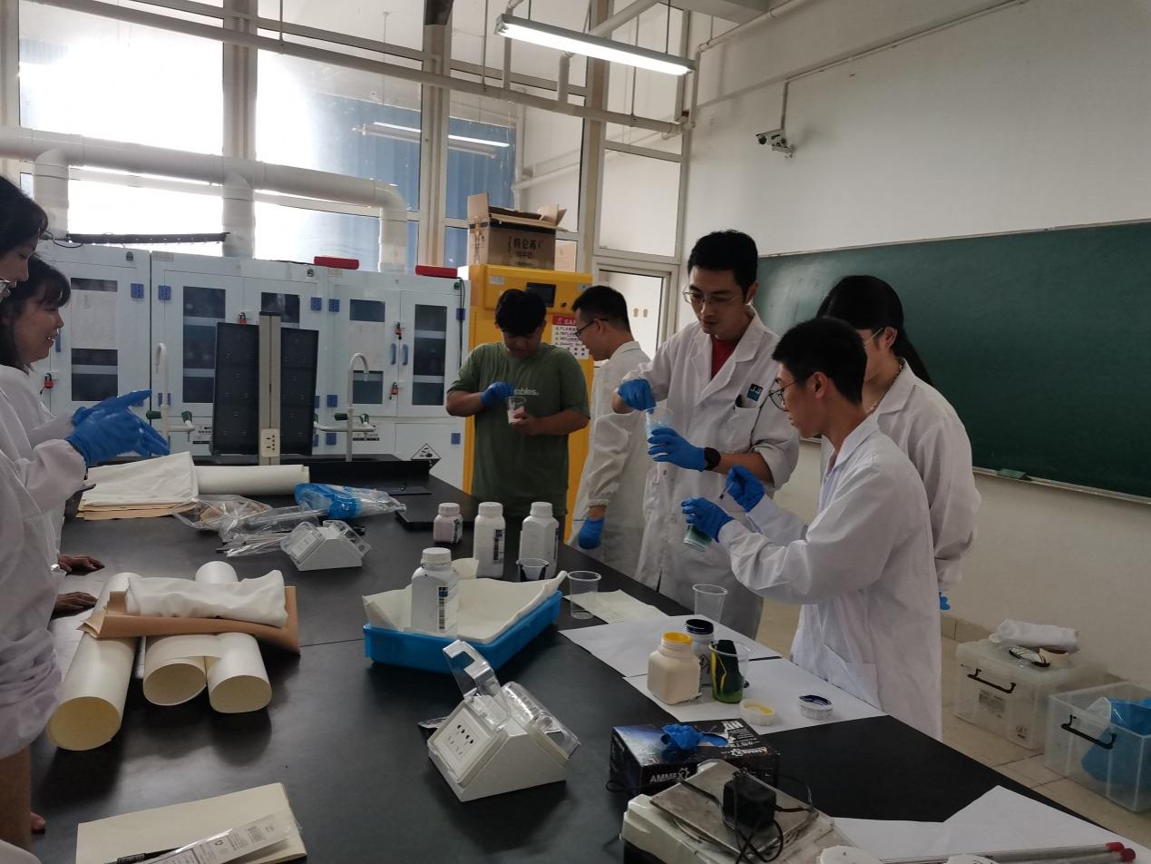 轻化工程专业发展历程、现状及十四五发展规划。李克弯经理等就STAHL公司的发展历程、皮革涂饰、合成革制作技术等方面给师生们做了深入的讲解。随后,指导学生们进行合成革设计与制作实验,通过动手实操的切身体会,使每个学生充分学习与体会到合成革与天然皮革在制作工艺方面的异同。最后,进行实验成果展示和技术总结。