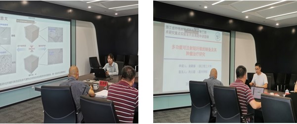 916日上午,浙江省纱线材料成形与复合加工技术研究重点实验室第二届第三次学术委员会会议在嘉兴学院G60产业与创新研究院举行。中国工程院院士、浙江省纱线材料成形与复合加工技术研究重点实验室学术委员会主任蒋士成(线上),嘉兴学院副校长、浙江省纱线材料成形与复合加工技术研究重点实验室主任周宏伟教授,浙江省纱线材料成形与复合加工技术研究重点实验室学术委员会成员高长有教授、钟明强教授、钱红飞教授、赵春财教授、吴昉赟高级工程师、覃小红教授(线上),浙江省纱线材料成形与复合加工技术研究重点实验室学术委员会成员、材纺学院院长易洪雷教授,材纺学院副院长李海东教授,以及省重点实验室开放基金项目汇报人参加本次会议。会议分别由易洪雷和钟明强教授主持。