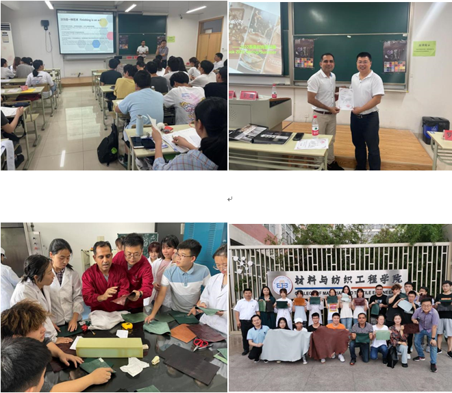 首先,Adnan、王鑫向师生们简要介绍了PieLcolor公司的情况并进行了时尚皮革流行风格技术讲座。随后,在轻化工程智慧实验室指导同学们对自然纳帕鞋面革、平纹沙发革和油蜡变效应革等进行设计与实践。最后,同学们还对龟裂效应、珠光效应和防水效应等皮革的涂饰工艺进行了设计与制作,每位同学充分发挥了动手和实践能力,得到了自己喜欢的时尚皮革产品。