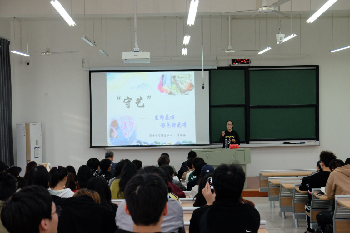 传承人朱琳燕以“两块布、一个人”为主题,以图文并茂的形式带领学生走进非遗传承中那些鲜为人知却又精彩纷呈的故事,进一步激发了同学们探索与传承非遗文化的热情。