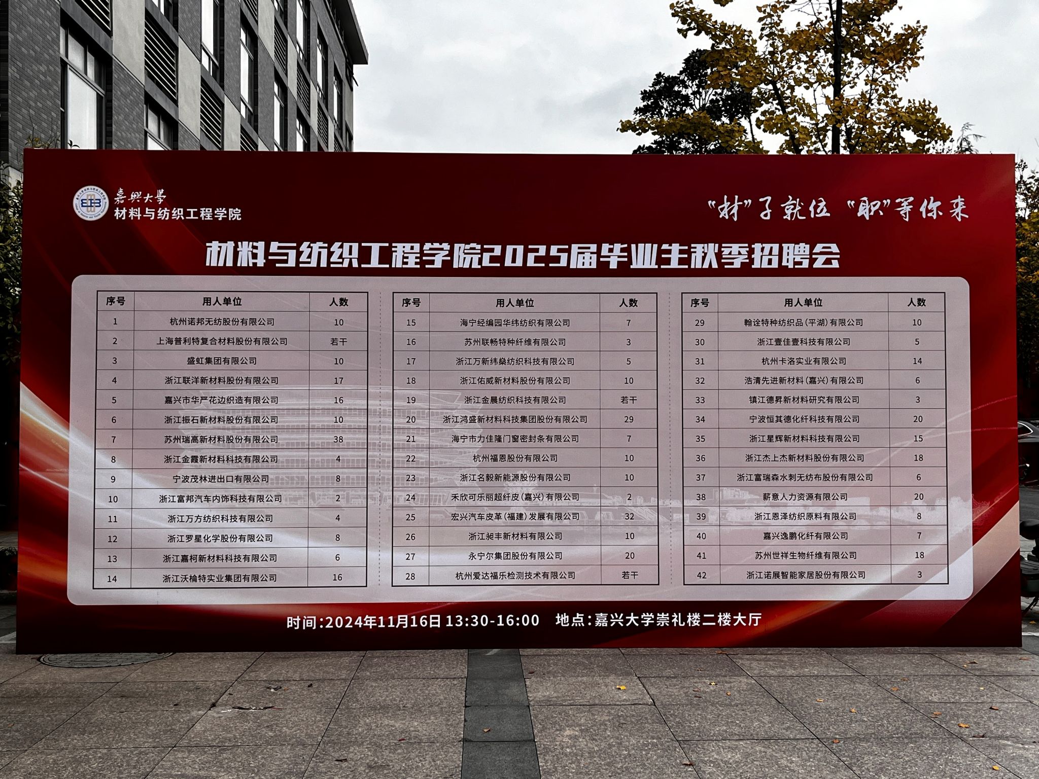 2025届毕业生早就业、就好业,11月16日下午,材纺学院在崇礼楼二楼大厅举办“材子就位 职等你来——2025届毕业生秋季招聘会”。