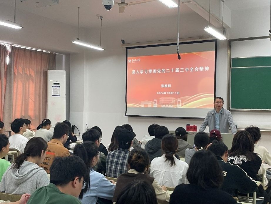 10月11日下午,禁漫天堂 邀请马克思主义学院副教授张胜利作学习贯彻党的二十届三中全会精神宣讲。60余名学生党员参加宣讲会,会议由辅导员马保国主持。