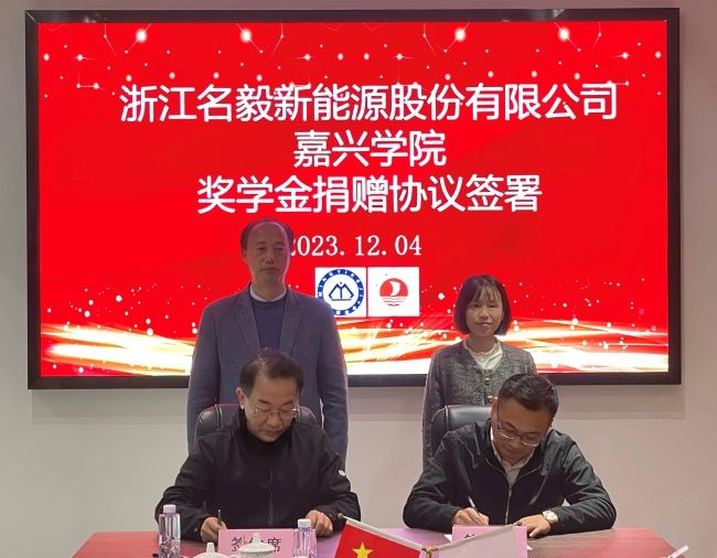 会议开始,包维维介绍了秀洲高新区的基本情况,指出高新区已跻身最高等级的“国家队”行列,目前在不断蝶变中砥砺前行。丁玉泉介绍了学校发展概况,希望以此为契机,与公司深化产教融合,扩大合作,加强交流互动。随后,寸哲介绍了材纺学院基本情况,指出学院正围绕有特色、高水平的教学研究型二级学院的目标奋勇迈进,将不断扩大和深化校企合作,更紧密推进校企地融合发展。徐井介绍了浙江名毅新能源科技有限公司的发展历程,他表示希望通过此次校企合作,进一步挖掘校企双方发展需要,有效推动校企良性互动,实现校企双方的高质量发展。仪式上,孙大宏为徐井颁发了校外导师聘书,校企双方签署捐赠协议和合作协议,名毅新能源向我校教育发展基金会捐赠10万元人民币用于支持非织造材料与工程的人才培养、专业建设。
