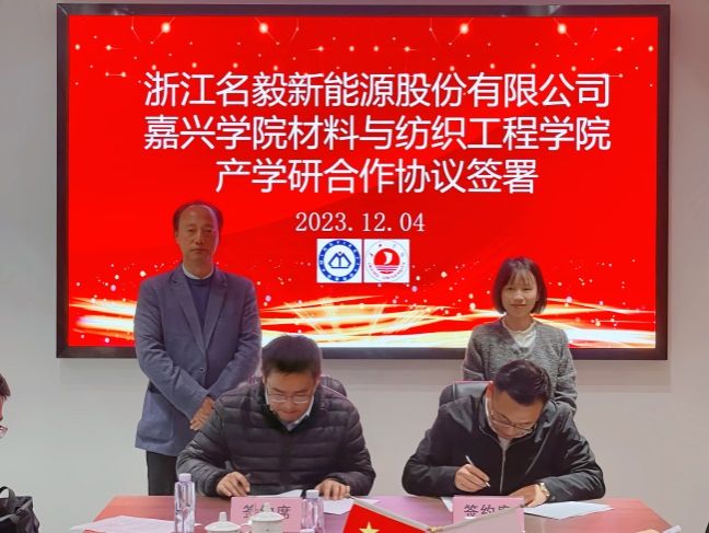 非织造材料与工程专业与浙江名毅新能源股份有限公司举行校企合作签约仪式,活动在浙江名毅新能源股份有限公司举行。嘉兴市秀洲国家高新技术产业开发区管委会副主任包维维,嘉兴学院社会合作处处长丁玉泉,浙江名毅新能源股份有限公司董事长徐井、总经理徐燕及研发部、行政部等相关部门负责人,嘉兴学院材料纺织工程学院党委书记寸哲、党委副书记孙大宏与学工办、非织造系相关负责人及教师代表、非织造231班全体学生等参加会议。