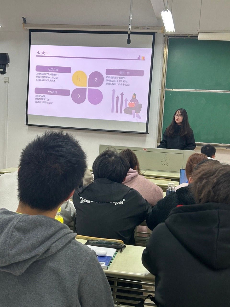首先,张彩丹老师讲述了举行本次活动的目的意义,嘱咐新生认真倾听学长的成长历程和学习经验,借鉴、超越并走向优秀。随后,王雨楠、顾英杰、陈晟鸿、屈锋云等高年级同学从大学四年规划、个人成长规划、学习方法、竞赛、考研、成长感悟等诸方面进行精彩分享,并期待新生同学能够珍惜时光,志存高远,找到自己的方向并为之努力。最后,罗主任进行总结,进一步强调了学习方法的重要性,希望同学们能找到合适自己的学习方法,认真学习知识,将知识能够转化为能力,以学增智,以学报国。并希望经过师生共同努力,使专业更强、学生更优。