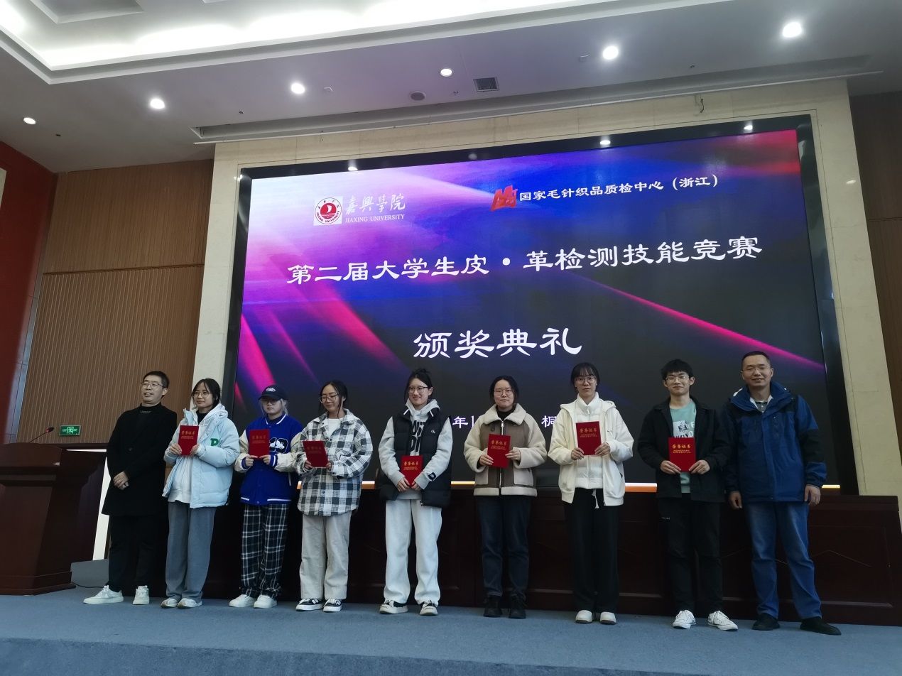 院长易洪雷教授、桐乡市市场监督管理局钱陈晨副书记、国家毛针织品质量检验检测中心(浙江)庄莉主任、袁绪政副主任、我校轻化工程系主任罗建勋教授及全体专任教师、轻化(实验)211班全体学生、轻化(专升本)231部分学生共29人参加了本次竞赛。