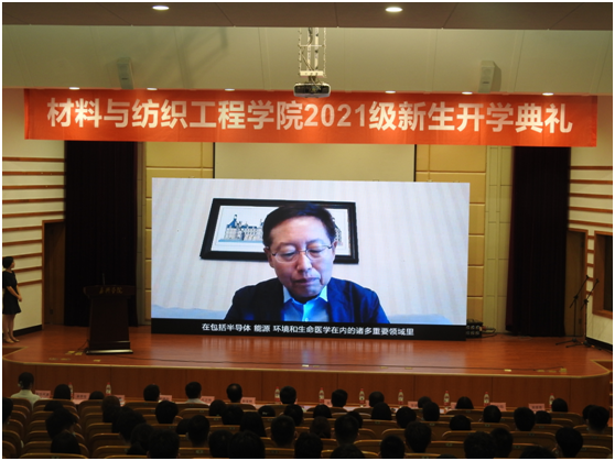 会上,韩国工程院和科学技术院两院院士洪淳亨以视频致辞,洪院士祝贺同学们选择了最有发展前途的专业领域,他认为同学们选择了材料学科,就相当于开启了通向事业成功的大门。作为纳米技术研究院院长,他诚挚邀请同学们加入纳米技术研究院,共创美好明天。