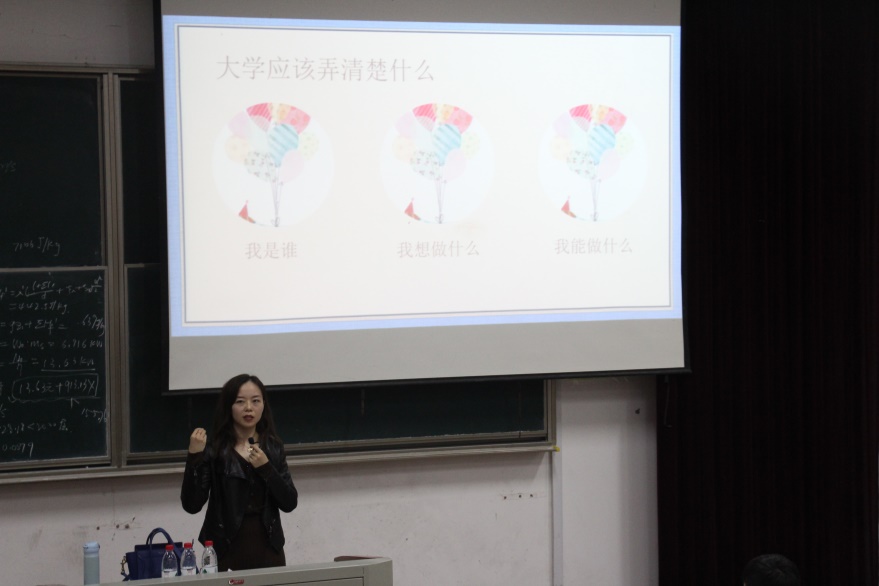 简短的自我介绍后,刘洋老师结合自身的经历向新生们讲述了初入大学在生活、学习、人际、语言、经济等方面可能遇到的问题以及困惑,并结合身边例子介绍了行之有效的解决方法。接着她强调了学习的重要性,在丰富的大学生活中,要把学习放在第一位,在力所能及的情况下,鼓励同学们尽可能多地体验大学丰富多彩的校园文化生活。随后,刘洋老师为大家讲解了学校的心理健康管理系统的运行,对心理健康教育中心也做了全面细致的介绍。在接连提出了值得深思的问题之后,她表示希望同学们在大学期间掌握技能,获得学识,拥有独立人格,收获情谊,四年当中,不留遗憾。