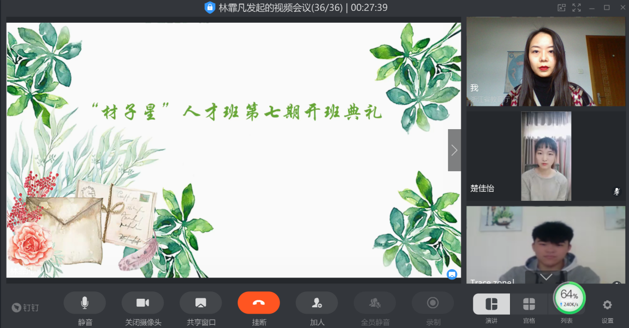 为深入实施青年马克思主义者培养工程,培养造就一批信仰坚定、素质突出、作风过硬的青年马克思主义者。3月29日下午14:00,材纺学院第七期“材子星”人才班以视频会议的形式正式开班。