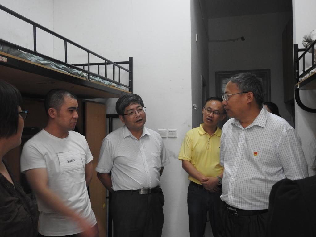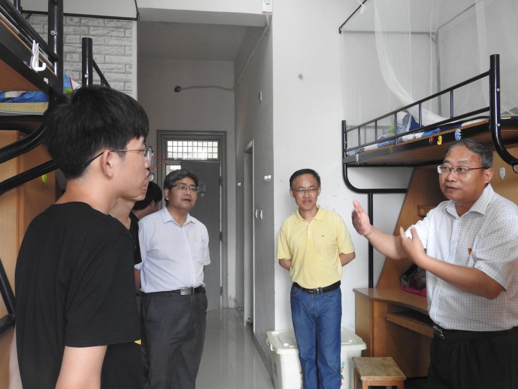 8月24日下午校党委副书记吕延勤,在材纺学院院长易洪雷、副院长黄立新、副书记黄芳芳的陪同下走访了材纺学院2019级新生宿舍。