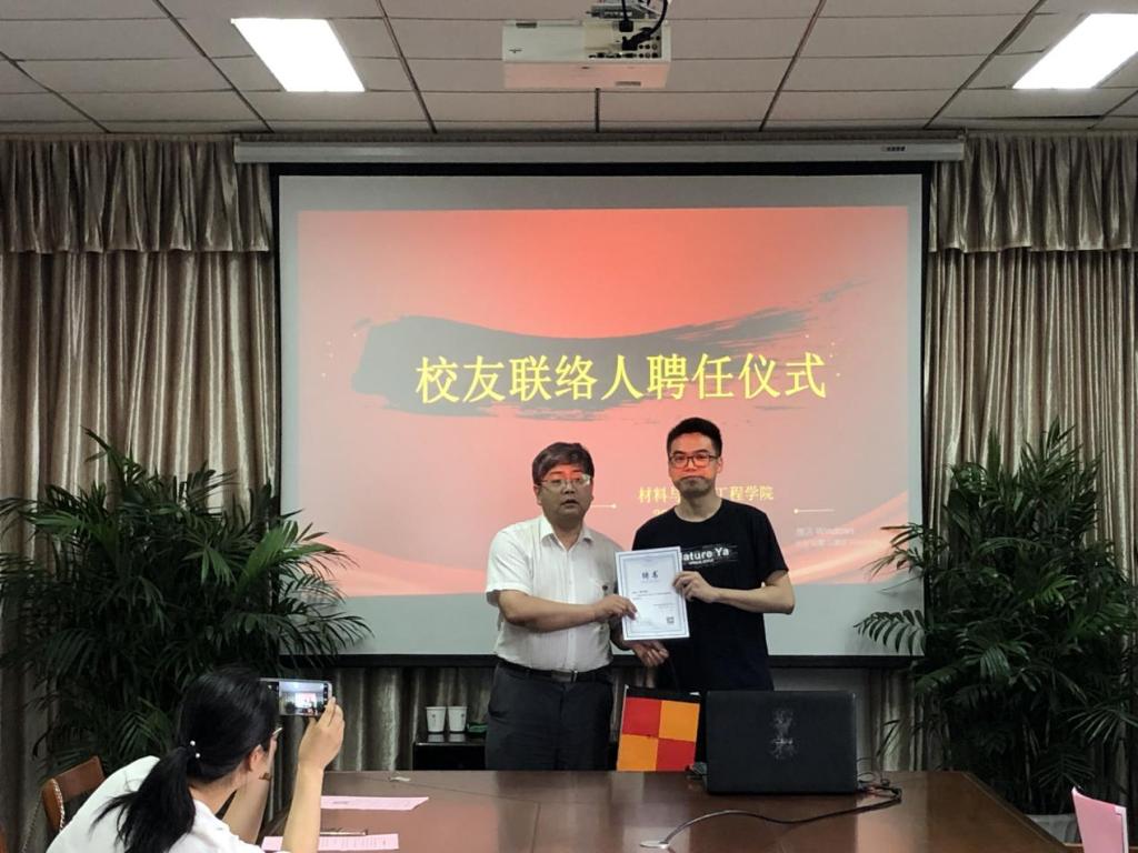 2019年6月20日,材纺学院2019届校友联络员座谈会暨聘任仪式在闻道楼419会议室顺利举行。材纺学院党委书记、院长易洪雷,党委副书记黄芳芳,学工办辅导员以及14位联络员参加,座谈会由王晓莹主持。