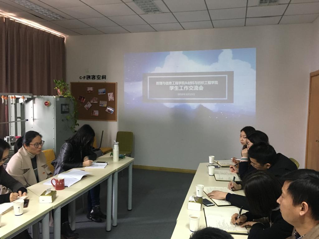 黄芳芳对数理与信息工程学院同仁们的到来表示热烈欢迎。随后,双方分别就各自学院学生工作的基本情况作了介绍。