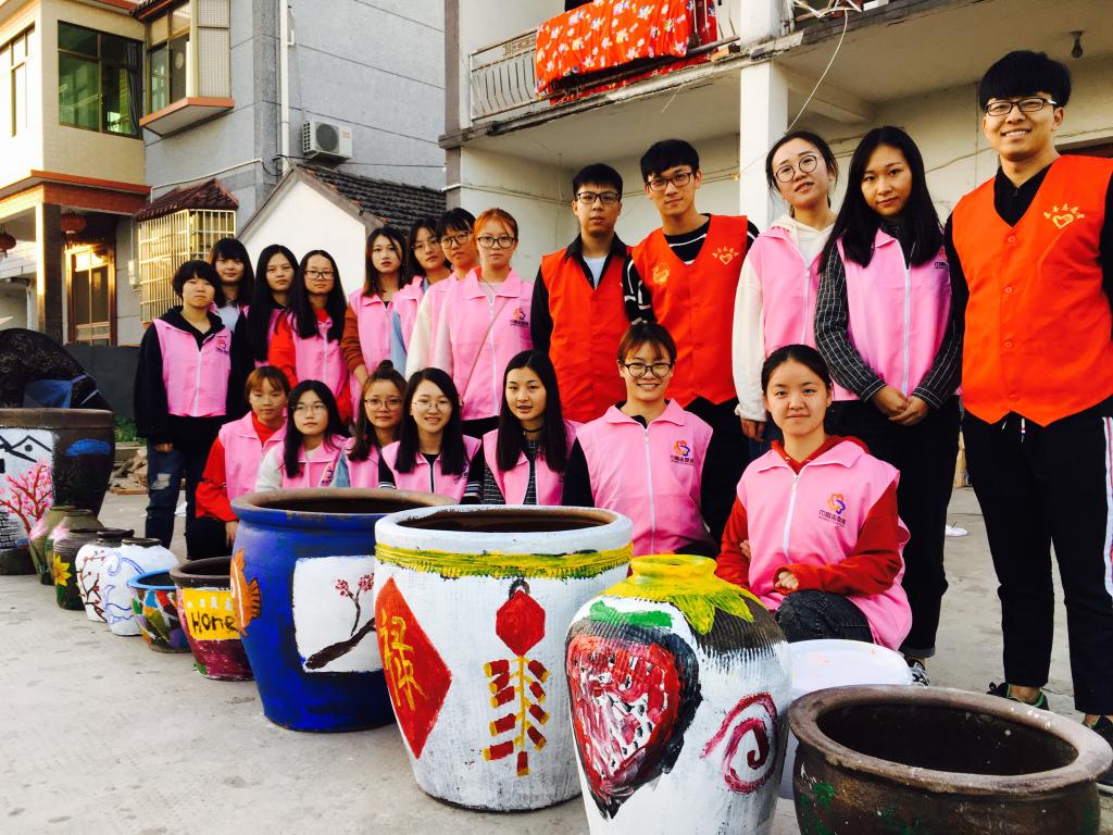 2017年11月9日,纺织卓越151班同学在西塘妇联工作人员的带领下前往西塘大禹村,贴近自然亲自参与土陶绘画制作。同学们到达的时候,地上已经摆满了大大小小的土陶。这些土陶都是当地居民自愿搬运到场地上的,平日里他们眼里的宝,如今要让我们大显身手着实倍感压力。