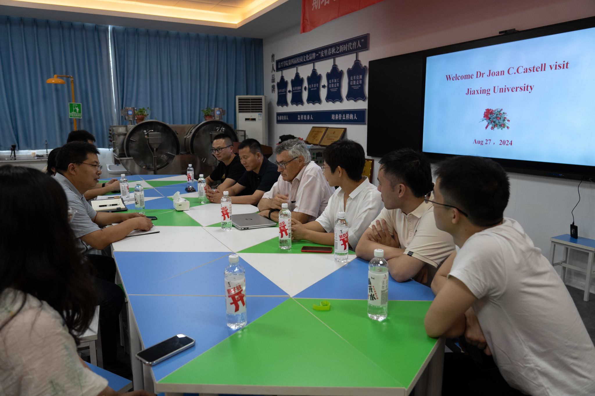 轻化工程智慧实验室,并在现场讨论和拍摄了双方合作的国际化课程。另外,与会人员一起走访了浙江富卡科技有限公司、桐乡市高桥皮革有限公司等轻化工程专业产教融合校外基地。