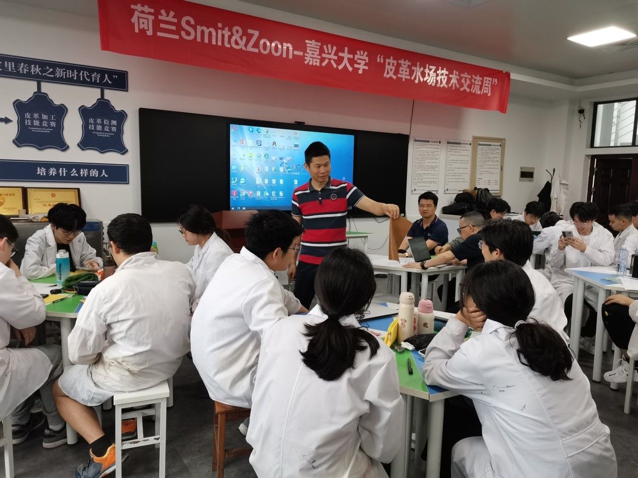 应禁漫天堂 轻化工程系邀请,荷兰Smit&Zoon公司徐建平副总经理、姜本红工程师、陈小江经理及范观水工程师于63日至67日莅临轻化工程智慧实验室指导产业课程之《生产实习》,开展“皮革水场技术周”。轻化(实验)211班全体学生、轻化工程系全体教师参加了该项活动。活动主要由马贺伟老师负责。