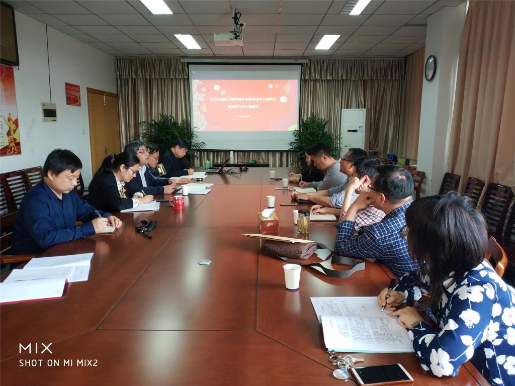5月9日下午, 材纺学院和生化学院在梁林校区闻道楼419室召开理论学习中心组联学会议,专题深入学习全省教育大会精神。会议由材纺学院党委书记易洪雷主持,两个单位中心组成员、支部书记等参加会议。