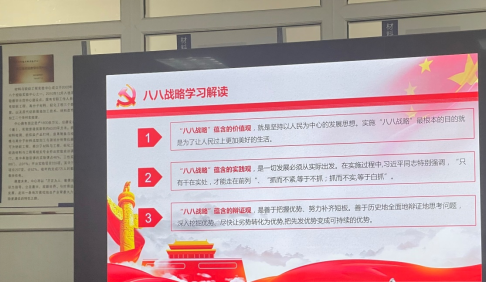 会议首先由韩万里上了一堂“八八战略”主题微党课,带领全体党员重温“八八战略”的主要内容及精神内涵。党课介绍“八八战略”是面向未来发展的八项举措,即进一步发挥八个方面的优势、推进八个方面的发展。“八八战略”体现了坚持以人民为中心的价值观,一切发展必须从实际出发的实践观以及把握优势补齐短板的辩证观,要把学习宣传贯彻“八八战略”精神作为一项长期的政治任务。