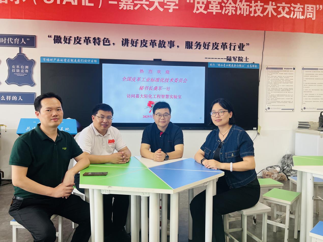交流会上,沈院长对桑军秘书长一行的到访表示热烈欢迎,并介绍了学院在学科建设、人才培养、科研成果等方面的发展情况。桑军秘书长则分享了全国皮革工业标准化技术委员会的组织结构、工作职能以及在皮革行业标准制定、认证检测等领域的业务开展情况。双方围绕人才联合培养、科研项目合作、标准制定等议题展开深入探讨,为后续校企合作奠定了坚实基础。